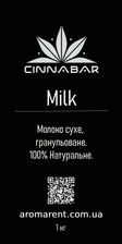 Молоко Cinnabar Milk містить 100% натурального молока, яке перероблено в гранули. Швидко розчиняється не залишаючи грудочок, і при взбиванні дає гарну пінку крема та має хорошу сумісність з іншими інгредієнтами при приготуванні напоїв. Підходить для використання в домашніх і промислових умовах, особливо для заправки торговельних автоматів для приготування та продажу гарячих напоїв.